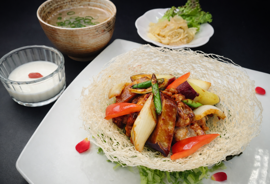 鶏肉と野菜の味噌炒めは、風味豊かな自家製甜面醤(中国甘味噌)で静岡県産地養鶏の鶏肉と新鮮な野菜を絶妙に炒めた一品です。ジューシーな鶏肉は、しっかりとした食感と旨味を持ち、彩り豊かな野菜が加わることで、見た目にも美しい料理に仕上がります。甜面醤の深いコクが鶏肉と野菜に絡み、食欲をそそる香りが広がります。栄養バランスも良く、たんぱく質やビタミンが豊富なため、健康を気遣う方にもぴったりです。ご飯との相性抜群です。 ぜひお試しください。