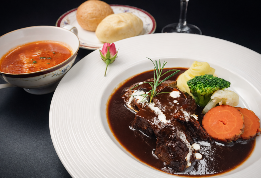 伝統的なレシピを元に当店によるアレンジで作り上げた秘伝のソースと牛肉の希少部位カイノミと共に召し上がってください。